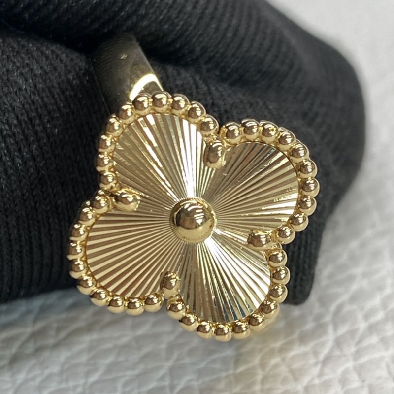 We’re really drawn to the design of this replica vintage 18k gold alhambra guilloché ring. The four-leaf clover symbolizes luck, and this ring incorporates light and shadow effects through laser processing, making each leaf seem to shimmer. Whether paired with casual wear or formal attire, it instantly elevates your overall look. The details are exquisitely crafted. Wearing it makes every day feel filled with good luck and beauty.