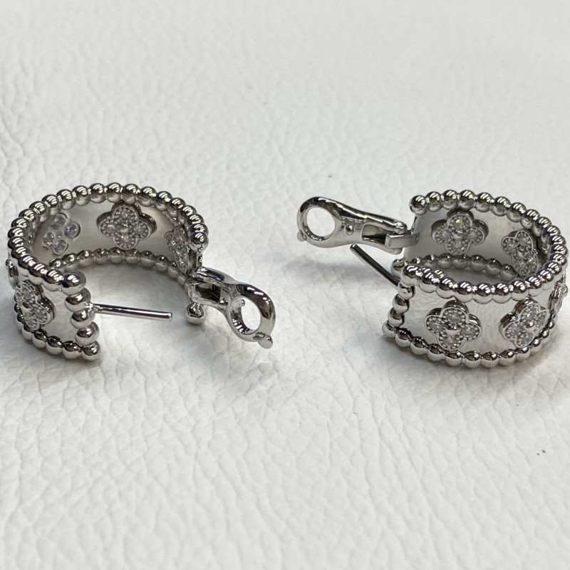 Custom Van Cleef Arpels 18K Diamond Perlee Clovers Hoop Earrings